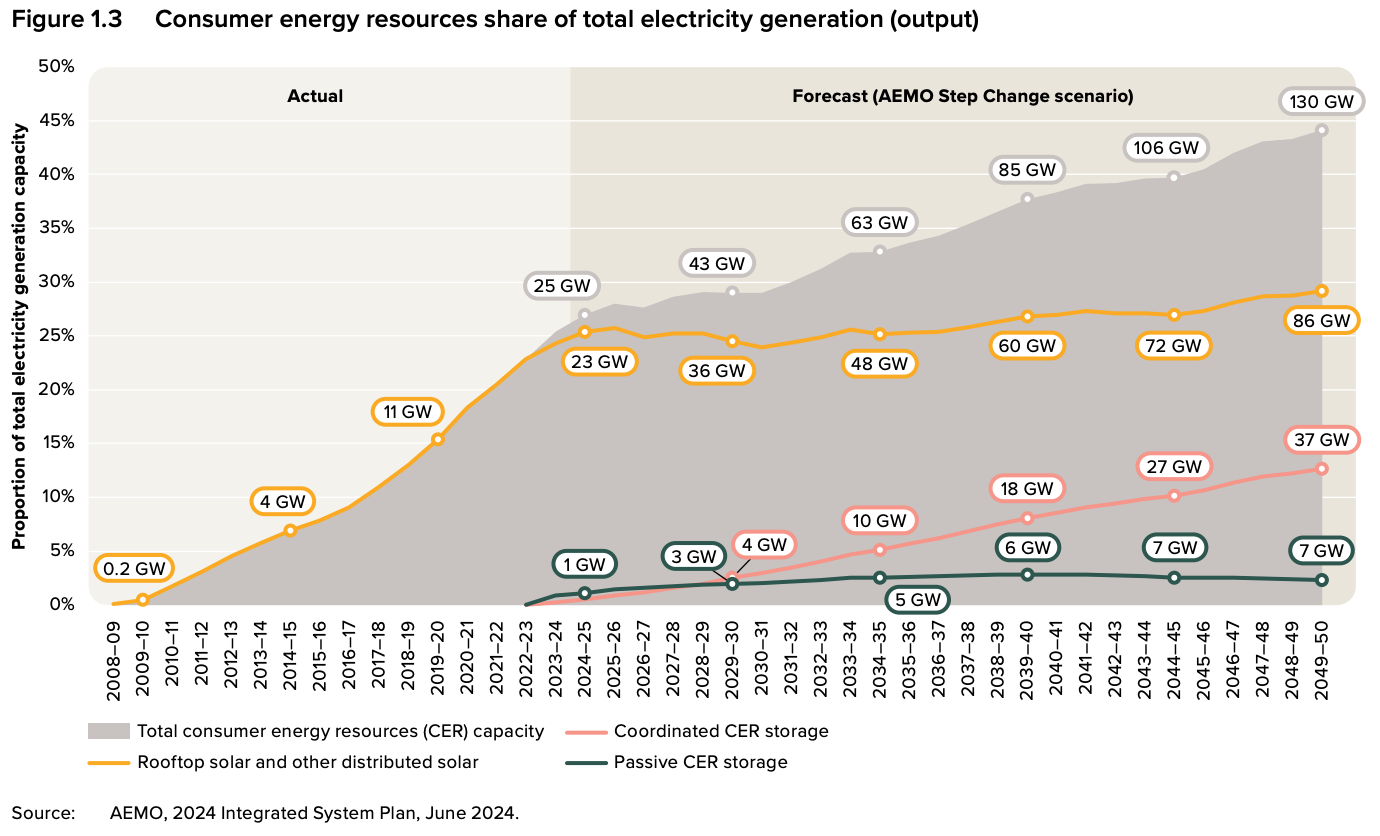 AEMO expects coordinated home and community storage to grow to about 37 GW by 2050, making consumer energy resources the largest source serving demand. With good timing across households, EVs and batteries, bills fall, emissions drop, and reliability improves. - Networks are catching up, slowly